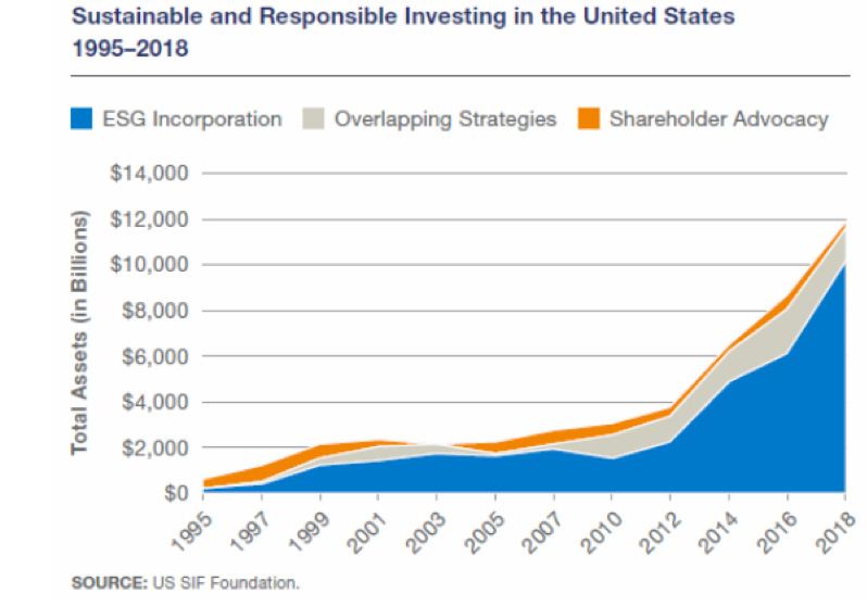 In fact, ESG based investing is now a $12 trillion business, as the chart below reflects: